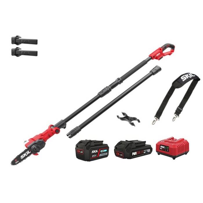 מסור גבהים 20V טלסקופי המגיע לאורך מקסימאלי של 3 מטר ומאפשר חיתוך ענפים בגובה של לפחות 4.5 מ' ללא צורך בשימוש בסולם.